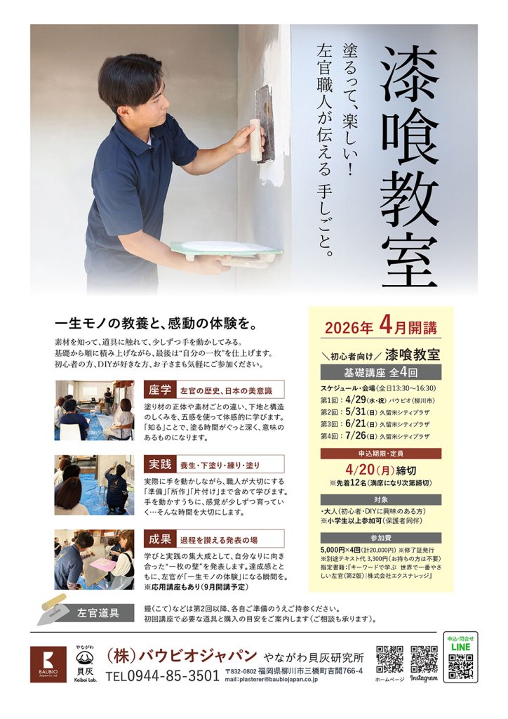 4月開講|漆喰教室 基礎講座 受講者募集
